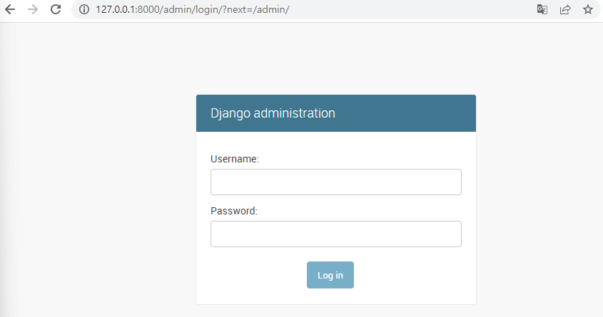 주소창에 127.0.0.1:8000/admin을 입력하면 다음과 같은 로그인 창이 뜬다.