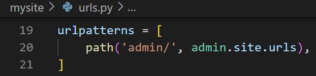 mysite\urls.py를 보면 admin을 통해 admin.site.urls를 실행한다