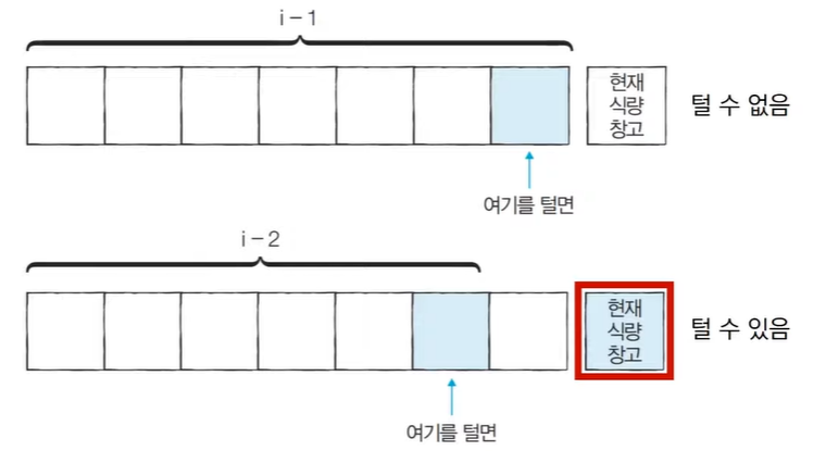 현재 i의 식량을 포함하는 경우와 포함하지 않는 경우가 있다.