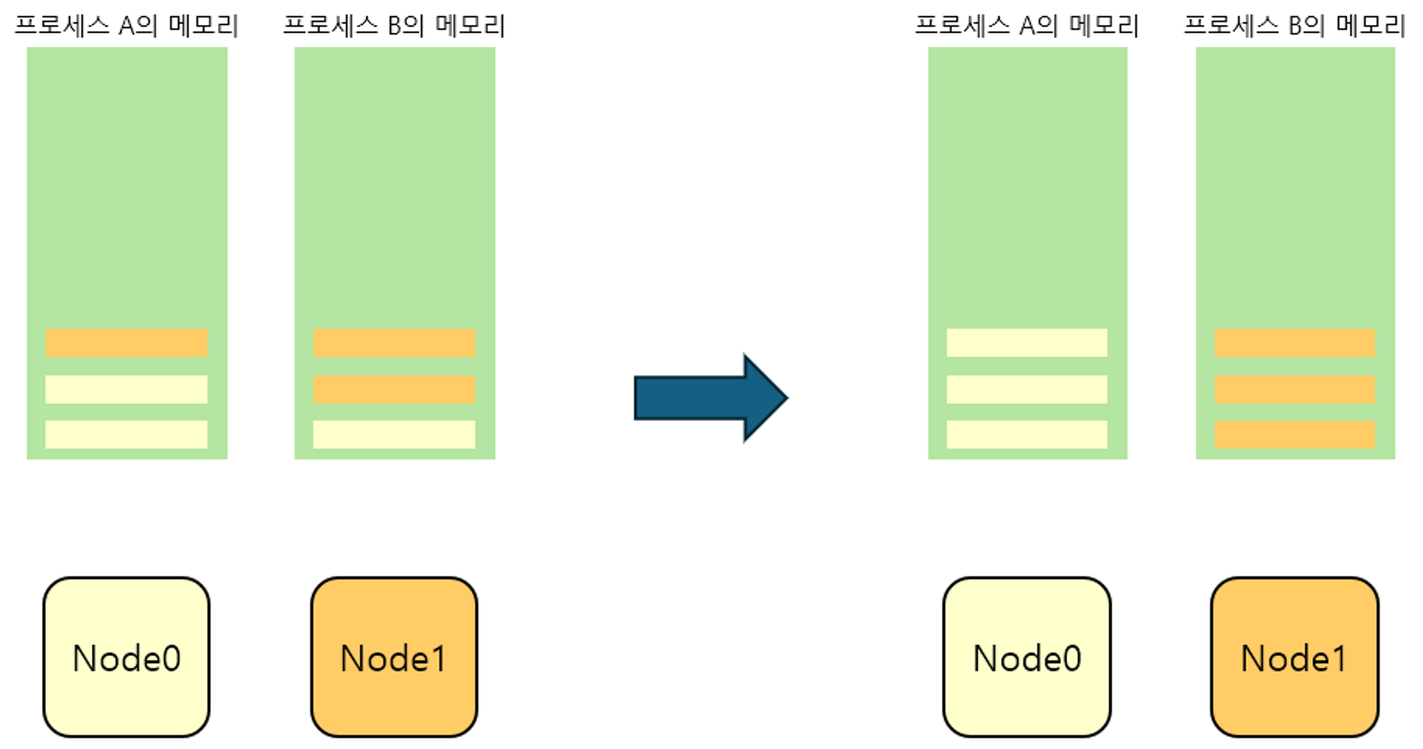 → 프로세스가 동작 중인 CPU의 노드에 따라 메모리를 할당한다.