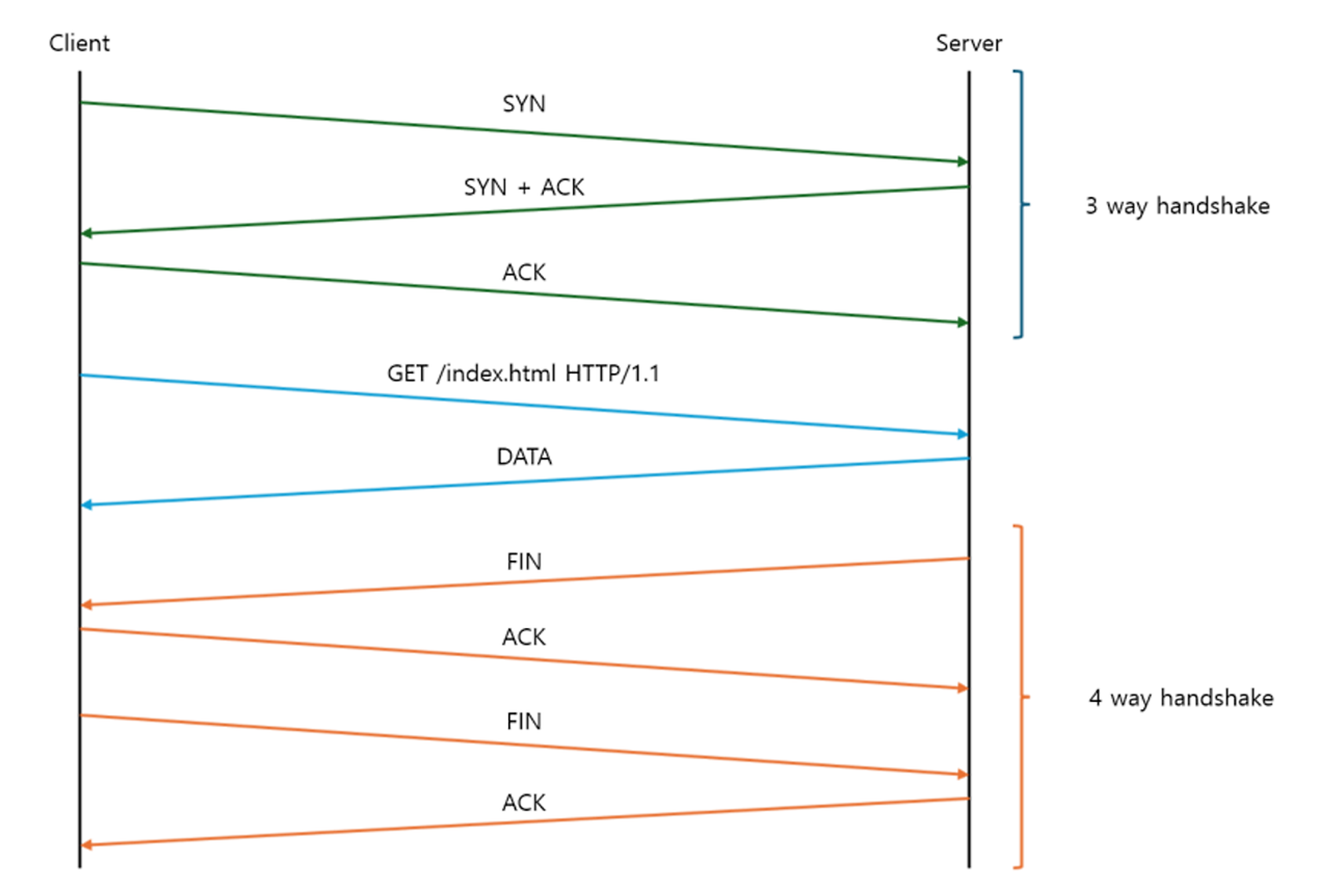 - FIN: 클라이언트가 서버에게 연결을 종료하겠다