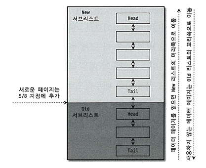 - 버퍼 풀의 LRU 헤더 부분에 적재된 데이터 페이지가 실제로 읽히면 MRU 헤더 부분으로 이동