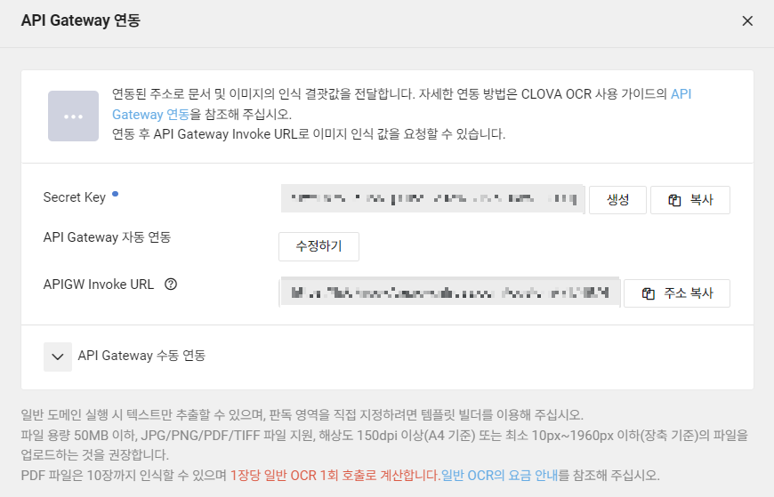 우선 Clova OCR을 사용하기 위해 Clova OCR 사용과 API Gateway 사용에 대해 신청해야 한다.