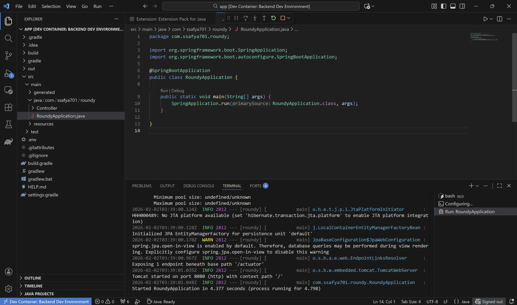 - postCreateCommand를 통해 컨테이너가 생성되자마자 실행 권한 부여와 Gradle 엔진 확인