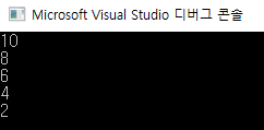 그러므로 'j < 4 - i'라는 조건을 주어 배열이 { 6, 8, 10, 4, 2 }가 되도록 해야한다.