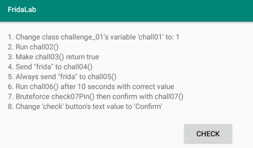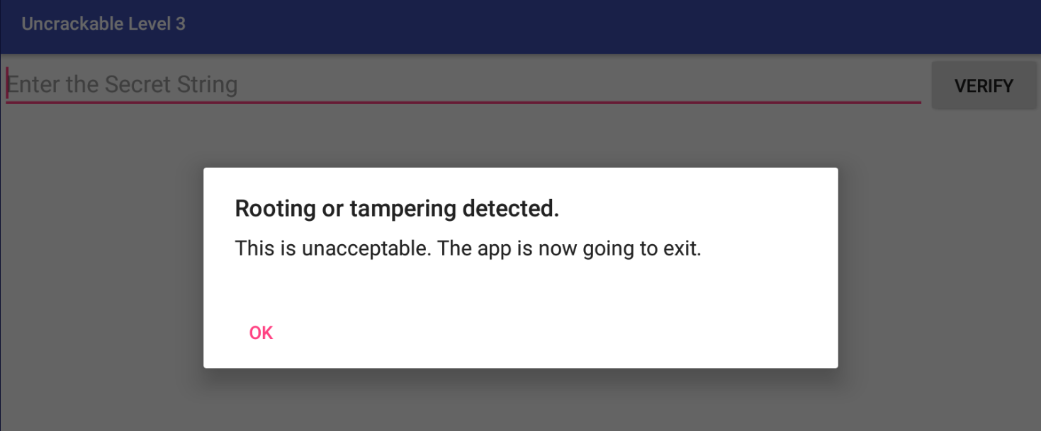 해당 앱을 실행하면 경고와 함께 OK를 누르면 앱이 종료된다. 기존 uncrackable1과 2와 동일하게 exit() 후킹을 시도했으나 다음과 같은 결과가 나온다. 분석 MainActivity를 확인해보자. 해당 부분을 보면 106번째 줄에서 init()함수에 xorkey 값으로 "pizzapizzapizzapizz"를 인자로 가지고 간다. 그리고 104번째 줄에서는 verifyLibs()함수가 실행된다. verifyLibs()라는 함수가 있고 해당 함수에서 libfoo.so 파일을 불러오는 것을 확인할 수 있다. 해당 함수는 무결성 검증 로직이다. libfoo.so 파일의 crc를 저장하고, apk가 실행되는 실제 환경에서 llibfoo.so 파일을 찾아 crc 값을 비교한다. 여기서 값이 다르다면 ..